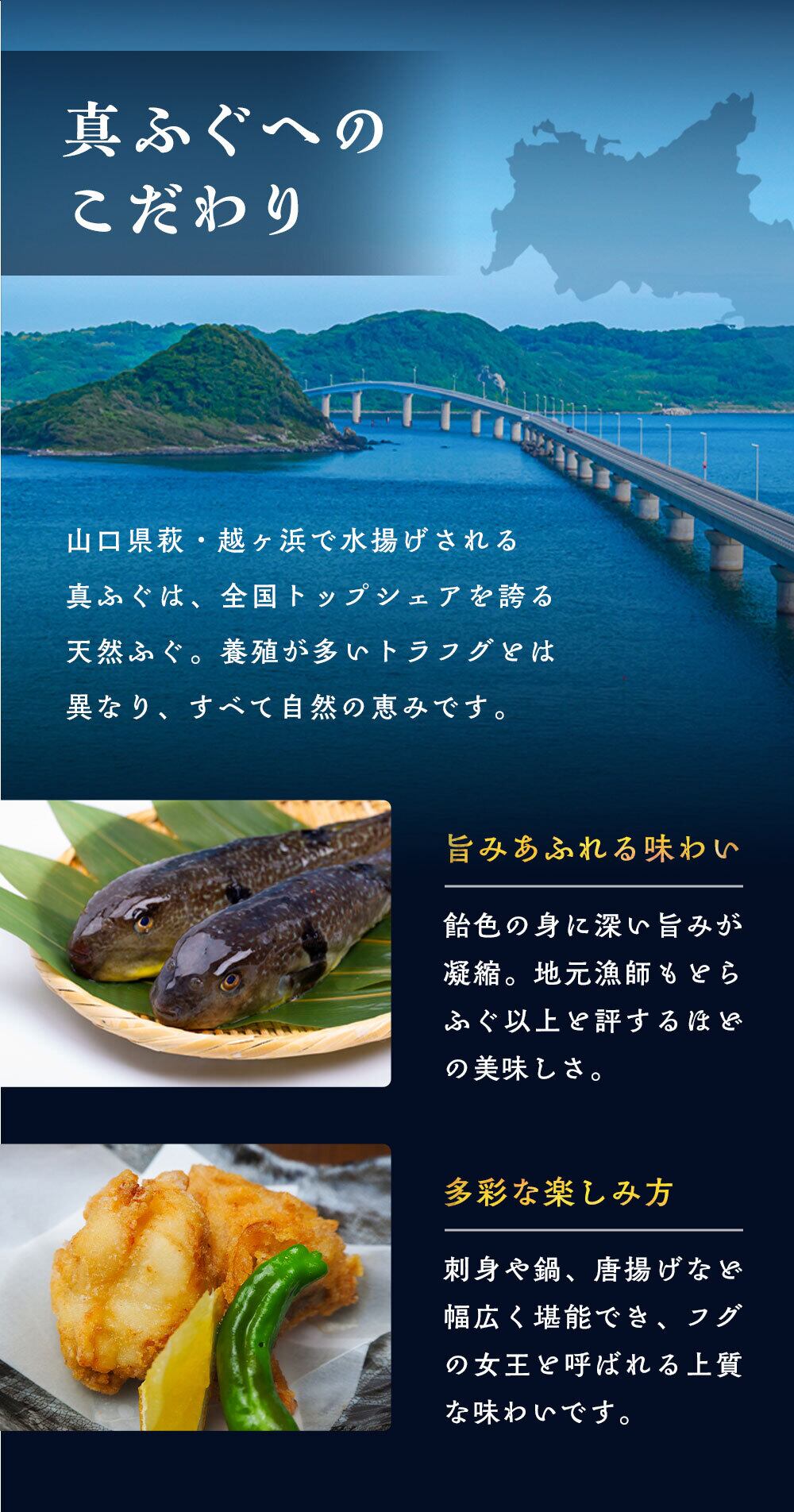 生産地/加工地は山口県【天然フグについて】山口県産白サバフグ、島根県産マフグ、日本海産ゴマフグを漁獲期に応じて使用しています。です